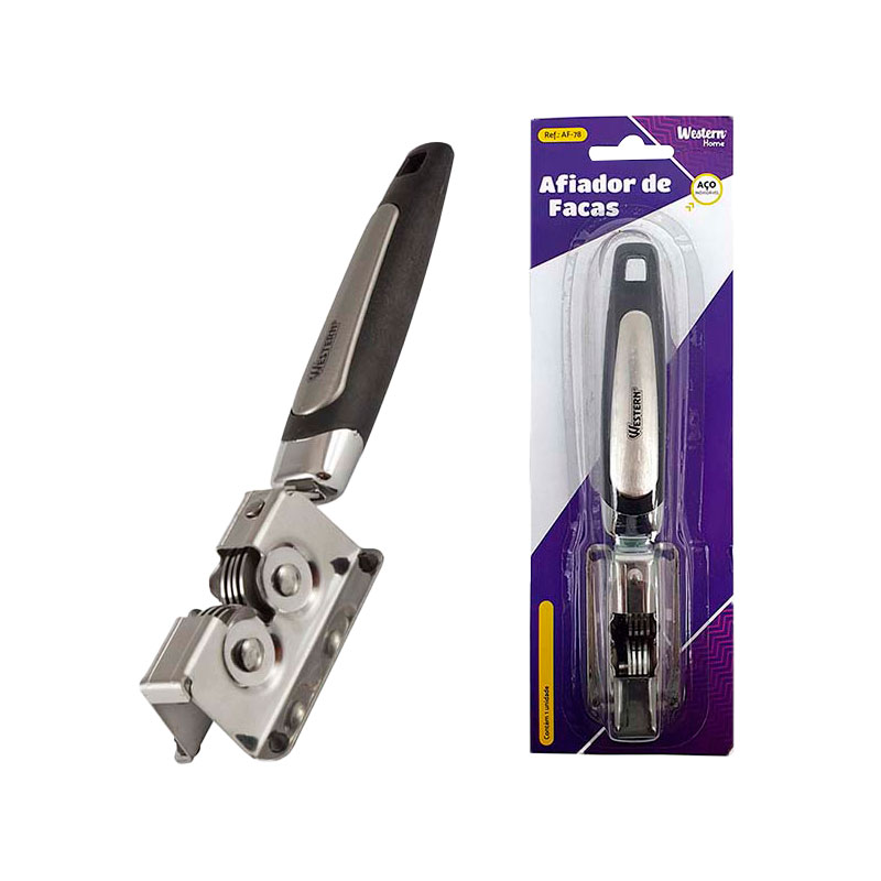 O Afiador de Facas Western AF78 é um utensílio manual prático e funcional, desenvolvido para restaurar e manter o fio de facas, tesouras e lâminas lisas de cozinha. Ideal para uso doméstico, permite manter as lâminas afiadas de forma rápida e segura, sem a necessidade de equipamentos profissionais.