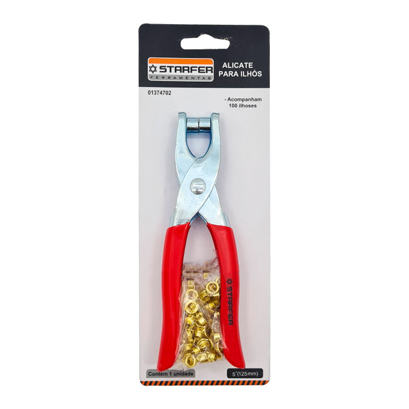 O Alicate para Ilhós Starfer é uma ferramenta manual indicada para aplicação de ilhós em tecidos, lonas, couro, tapetes e outros materiais flexíveis. Projetado para uso leve a moderado, facilita a colocação de ilhós de forma rápida e precisa, ideal para trabalhos domésticos, artesanato, consertos e pequenos projetos.