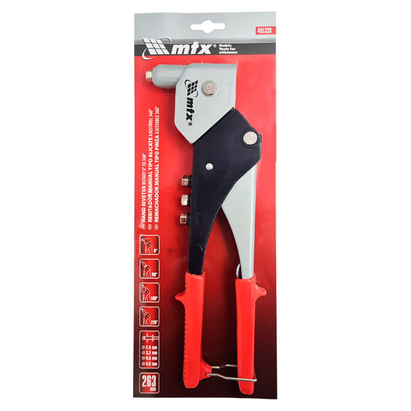 O Alicate Rebitador Profissional Giratório MTX é uma ferramenta altamente eficiente desenvolvida para aplicação de rebites de forma rápida, precisa e confortável, mesmo em ambientes de uso prolongado. Seu diferencial giratório permite um acesso versátil em ângulos difíceis, tornando-o ideal para aplicações em espaços estreitos ou trabalhos que exigem mobilidade.