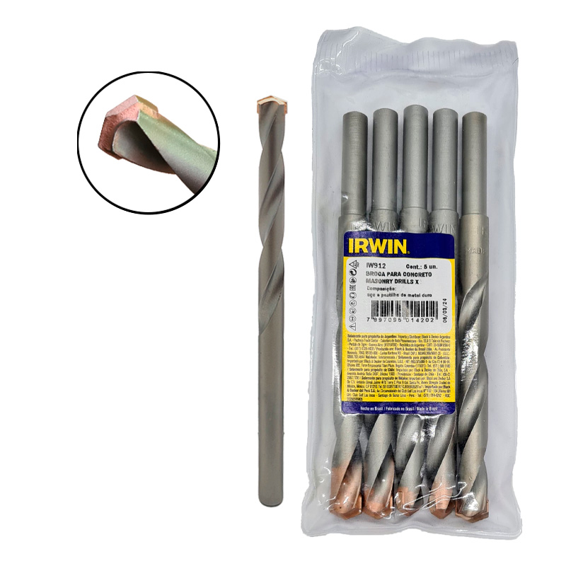 Broca Widea (metal duro) da marca Irwin, indicada para perfurações precisas e eficientes em concreto, alvenaria e materiais minerais. Possui ponta em metal duro de alta resistência, garantindo maior durabilidade, excelente capacidade de corte e menor desgaste durante o uso.