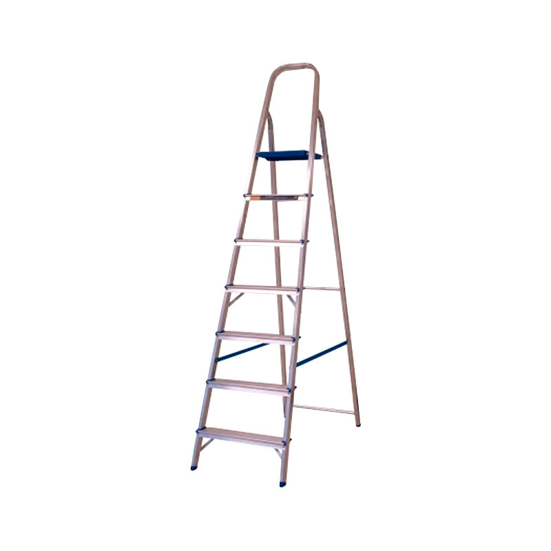 7 Degraus: A escada possui 7 degraus, oferecendo uma altura confortável para alcançar prateleiras altas, tetos e outros locais elevados. Ela é ideal para trabalhos que exigem um pouco mais de altura do que as escadas menores, tornando-a adequada para trabalhos domésticos e até mesmo em ambientes comerciais.