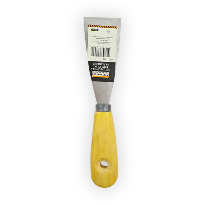 Possui lâmina metálica resistente, ideal para aplicação e remoção de massas, raspagem de tintas e limpeza de superfícies. O cabo em madeira proporciona empunhadura firme, durável e confortável durante o trabalho.