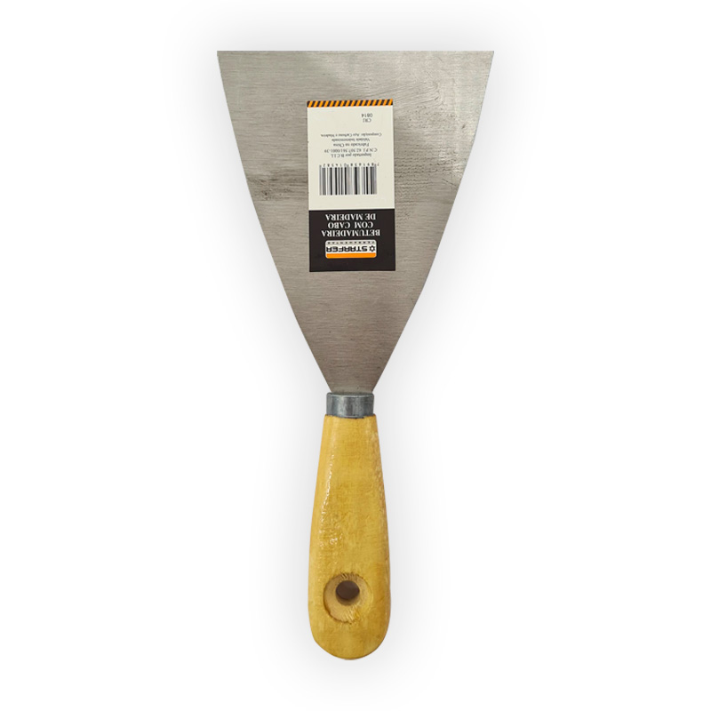 A Espátula Starfer Cabo Madeira 10 é indicada para serviços de pintura, acabamento e manutenção em geral, oferecendo maior área de aplicação, resistência e conforto no uso.