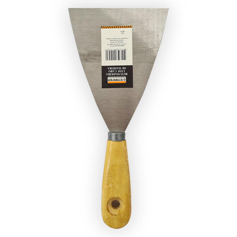 Possui lâmina metálica larga e resistente, com excelente flexibilidade para aplicação uniforme de massas e raspagem eficiente de superfícies. O cabo em madeira garante empunhadura firme, durável e confortável, proporcionando melhor controle durante o trabalho.