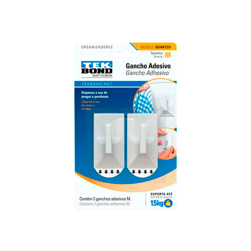 O Gancho Quartzo Branco M Tek Bond oferece praticidade, resistência e organização para objetos de porte médio. Fabricado em material durável com acabamento branco elegante, proporciona fixação segura em superfícies lisas sem necessidade de perfuração.