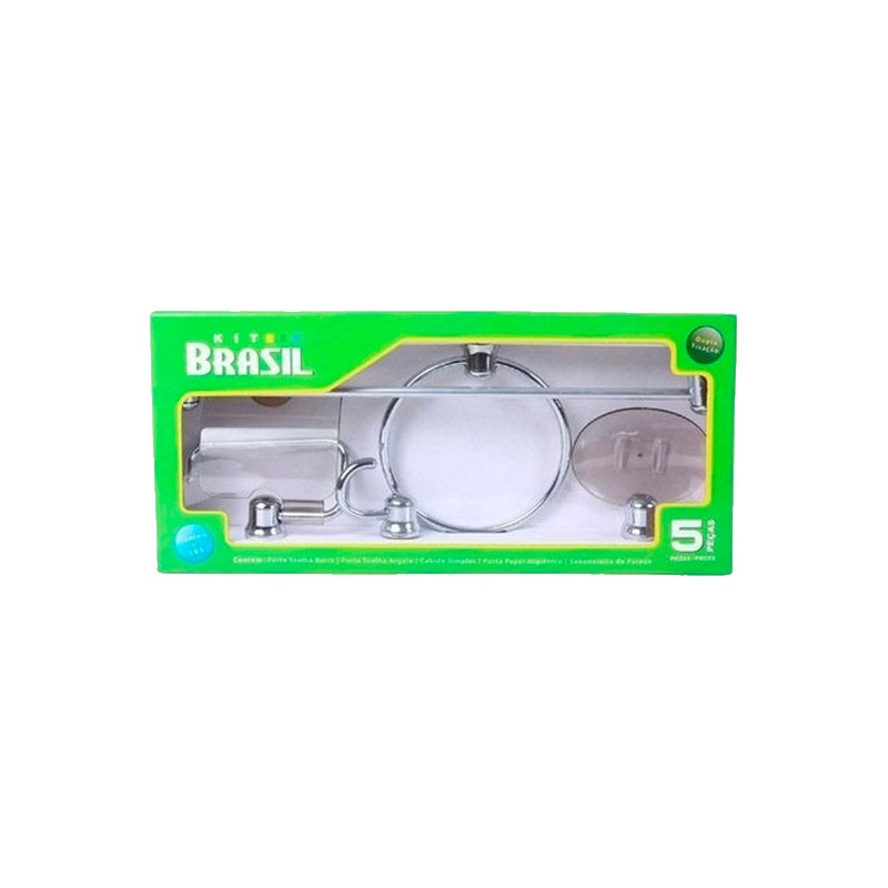 Kit completo de 5 peças com acabamento cromado e detalhes fumê, ideal para organizar o banheiro com estilo moderno e funcional.
