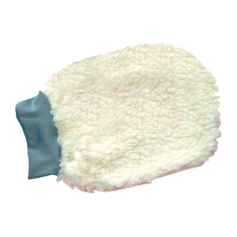 Uma luva feita de pelúcia macia — tecido felpudo, fofo e com boa capacidade de retenção de água e produtos de limpeza/polimento.