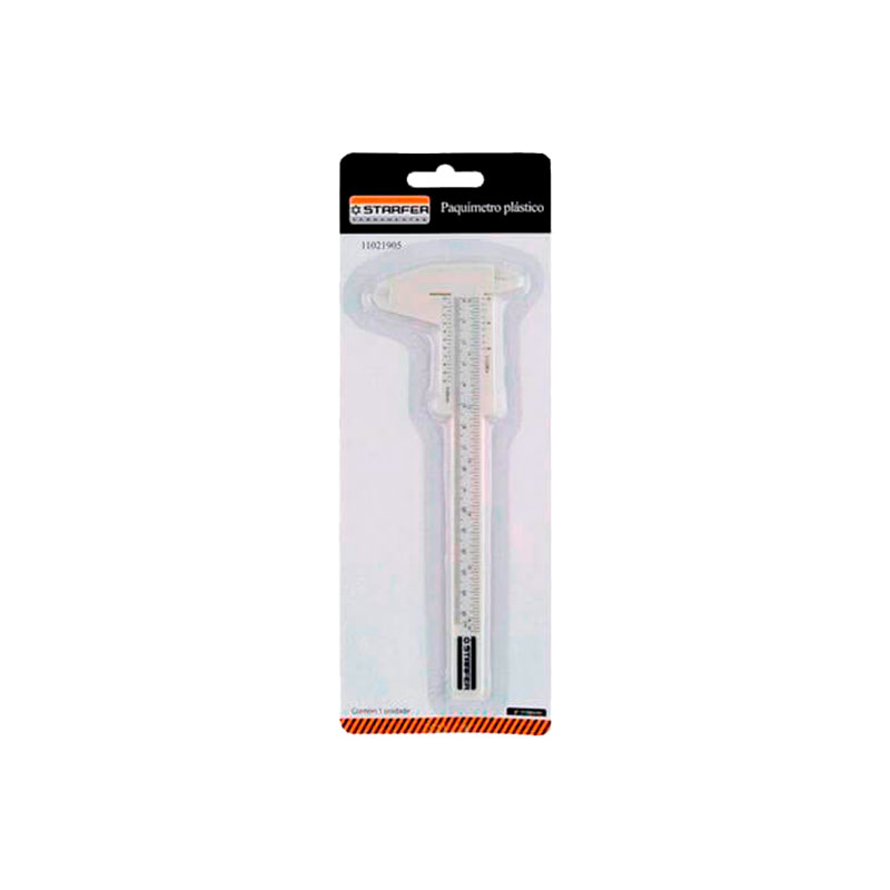 O Paquímetro Plástico 150 mm Starfer é indicado para medições precisas de dimensões internas, externas e de profundidade. Fabricado em plástico resistente, é leve, prático e fácil de manusear, sendo ideal para uso doméstico, escolar e profissional leve.