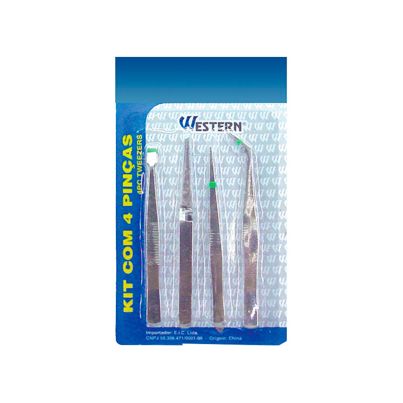Conjunto com 4 pinças grandes da marca Western, desenvolvido para oferecer versatilidade e precisão no manuseio de peças pequenas. Fabricadas em aço carbono, as pinças apresentam boa resistência, durabilidade e firmeza durante o uso.