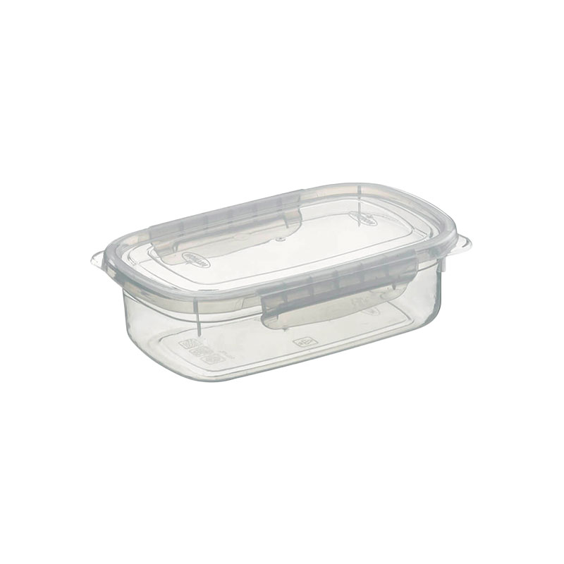 Tipo: Pote plástico com tampa e sistema de trava lateral — indicado para armazenamento de alimentos ou objetos domésticos.