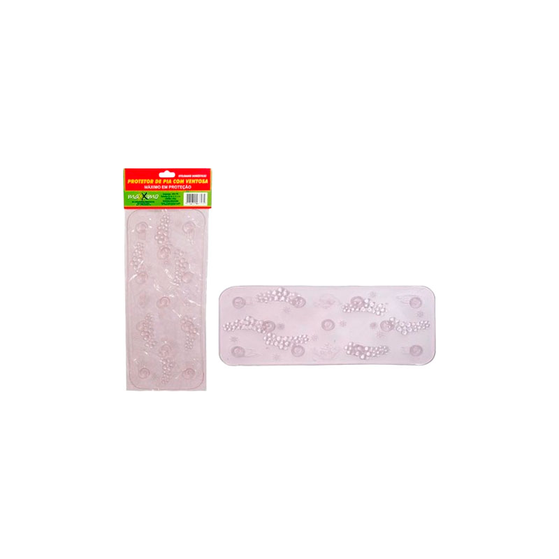 É um protetor pequeno para pia, feito de PVC ou silicone flexível, com ventosas na parte inferior. Ele serve para proteger a pia e as louças contra riscos, impactos e quebras durante a lavagem.