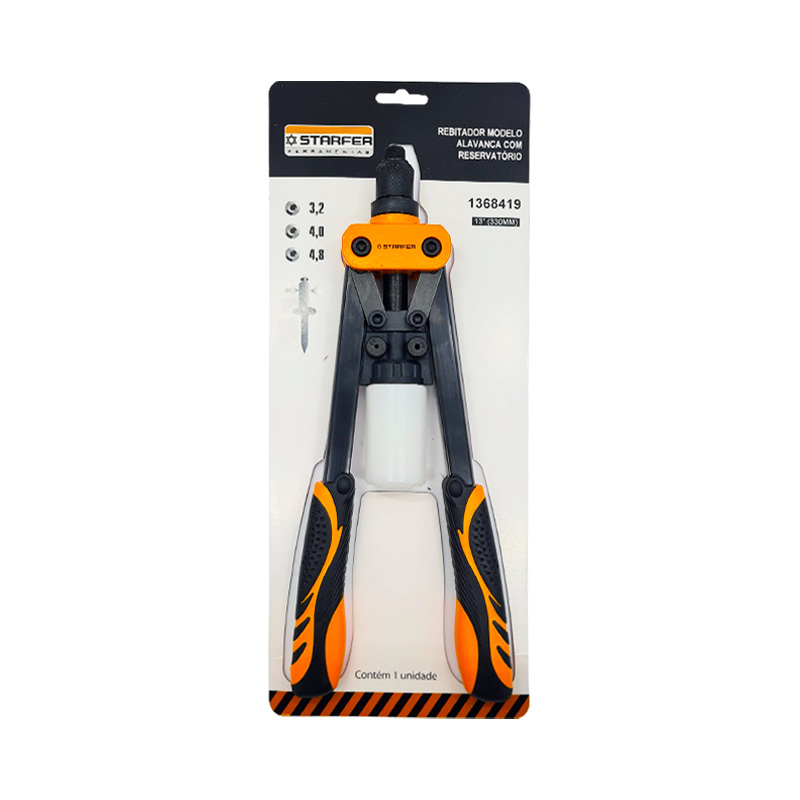 O Rebitador de Alavanca com Reservatório Starfer é uma ferramenta robusta e de alto rendimento, indicada para a aplicação rápida e eficiente de rebites, com menor esforço físico do operador. Seu sistema de alavanca proporciona maior força de tração, enquanto o reservatório integrado armazena os mandris, evitando paradas constantes durante o trabalho.