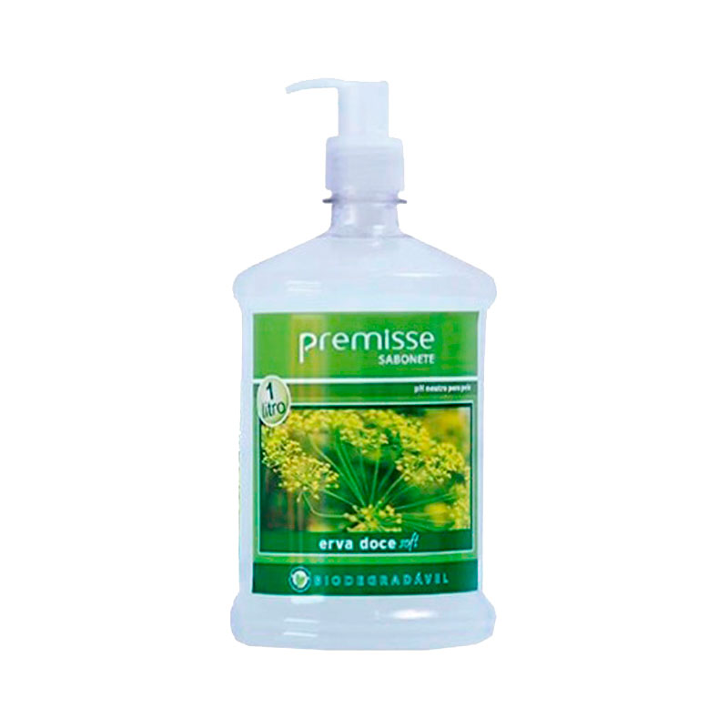 Sabonete líquido da Premisse, fragrância Erva‑Doce, em embalagem de 1 litro. Indicado para higienização de mãos, rosto e corpo, ideal para uso diário em casa ou em ambientes com maior consumo de sabonete, como lavabos, academias ou clínicas.