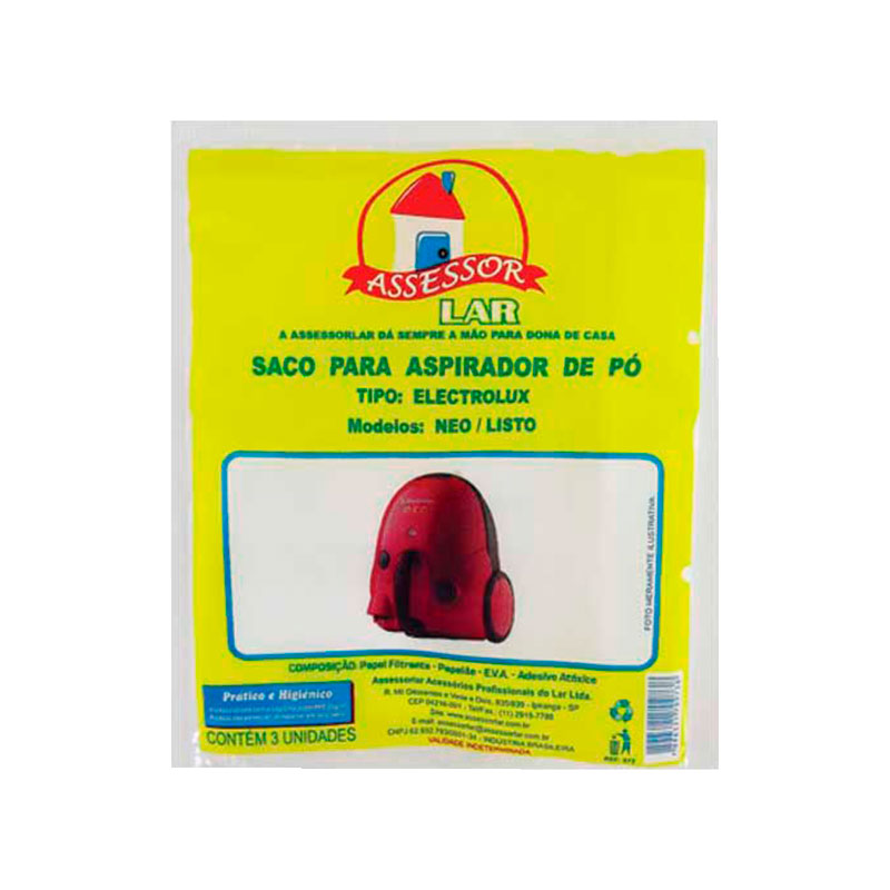 Compatibilidade: Modelos da linha Electrolux NEO e LISTO, incluindo NEO09, NEO10, NEO11, NEO12, NEO16, LISTO e outros que utilizam o mesmo padrão de saco.