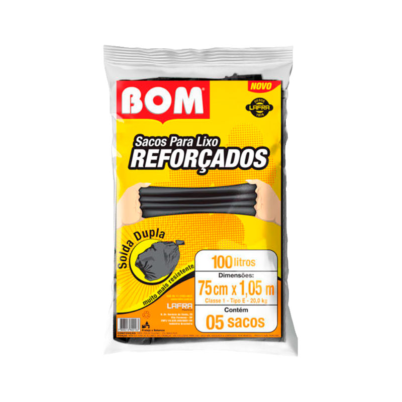 Capacidade: 100 litros — apropriado para lixeiras grandes ou para descarte de grande volume de lixo.