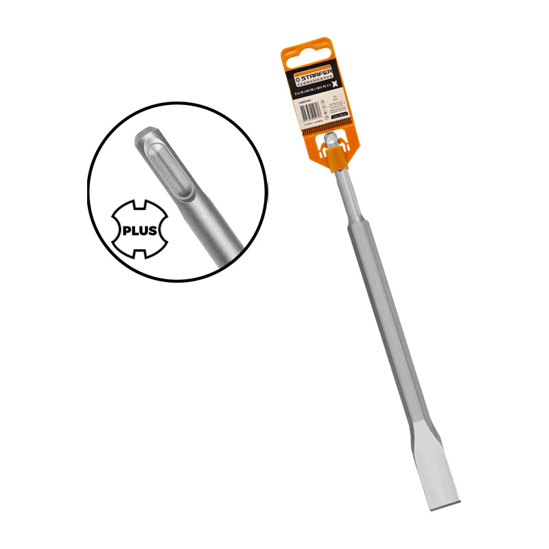 Talhadeira manual para uso em marteletes com encaixe SDS Plus, projetada para demolição, talhamento e remoção de material em superfícies duras, como concreto, alvenaria e reboco. Fabricada em aço temperado de alta resistência, proporciona bom desempenho e durabilidade em trabalhos profissionais e de manutenção.