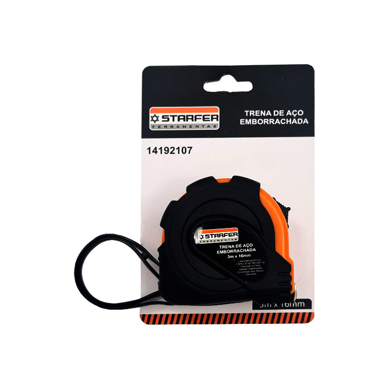 A Trena Emborrachada Starfer 3 m x 16 mm é uma ferramenta de medição manual compacta e resistente, indicada para uso em construção civil, marcenaria, reformas e medições gerais. Seu corpo revestido em borracha proporciona maior proteção contra impactos, aderência segura e conforto durante o uso, garantindo durabilidade e precisão.